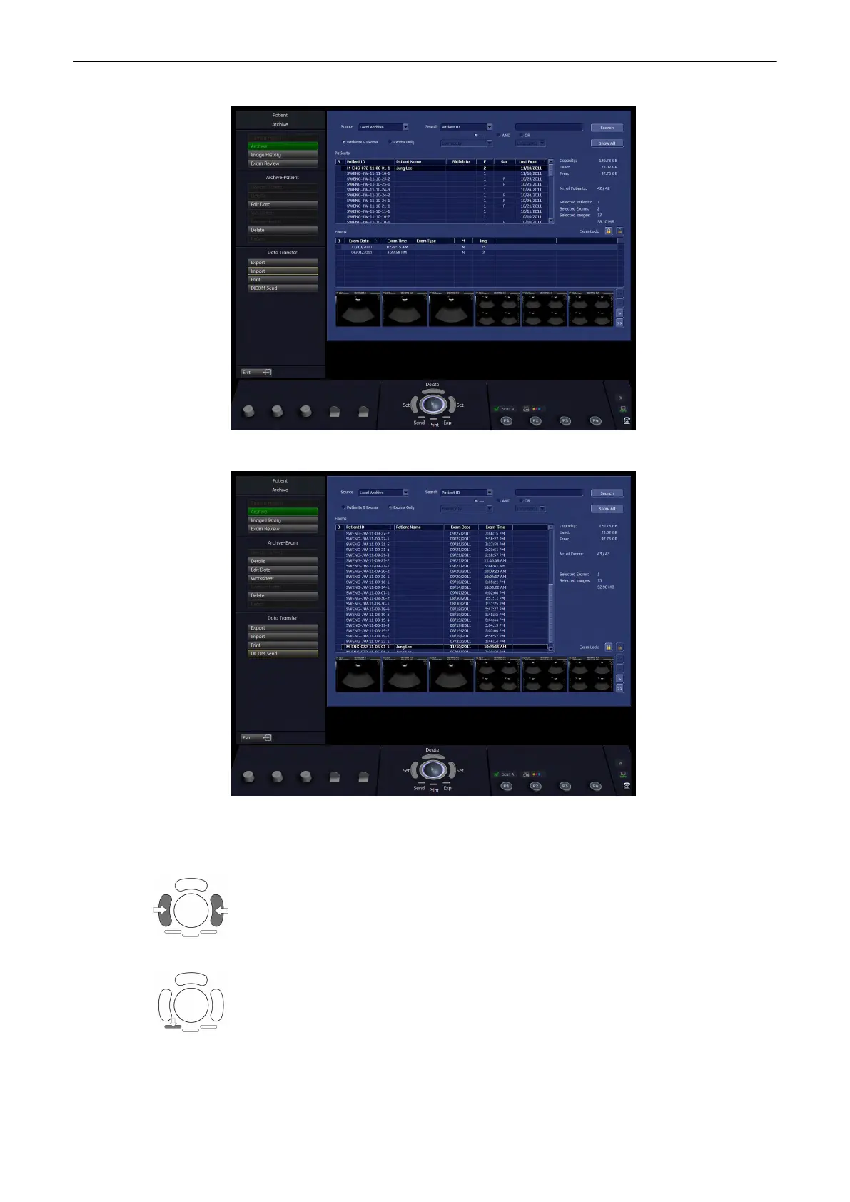 Press the lower, left trackball key to send and image to dicom. For more details, see 'Data