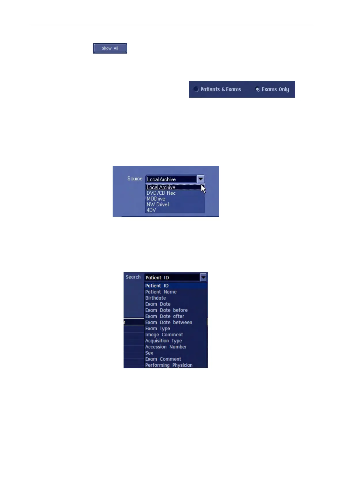 When “Source = DICOM Server” is selected, the Archive Screen changes, see