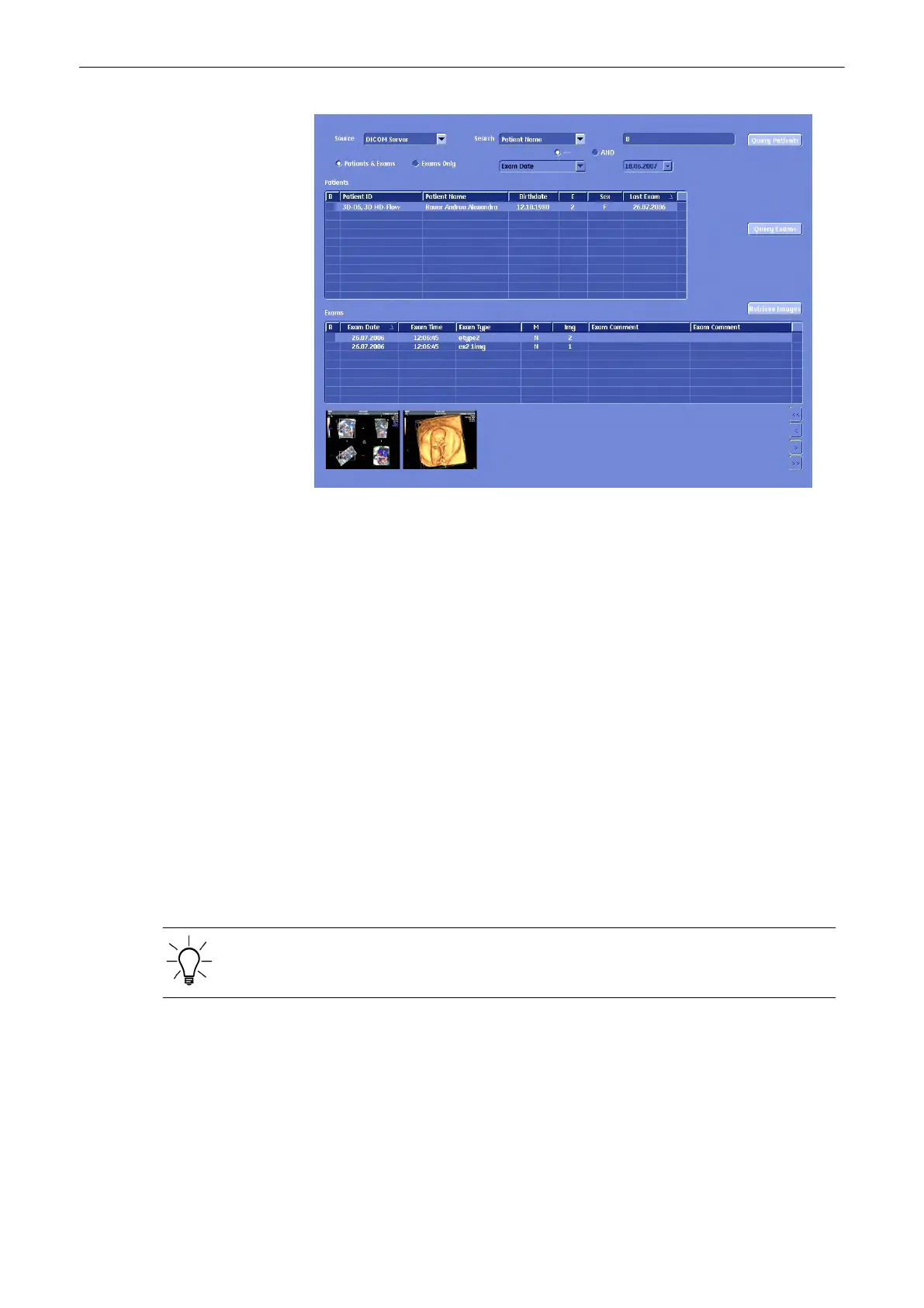 19. Select a patient or exam and press "Import" to import the selected data into the local