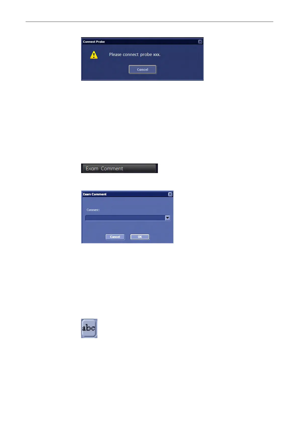 If an exam comment already exists, the dialog displays the current exam comment, which can
