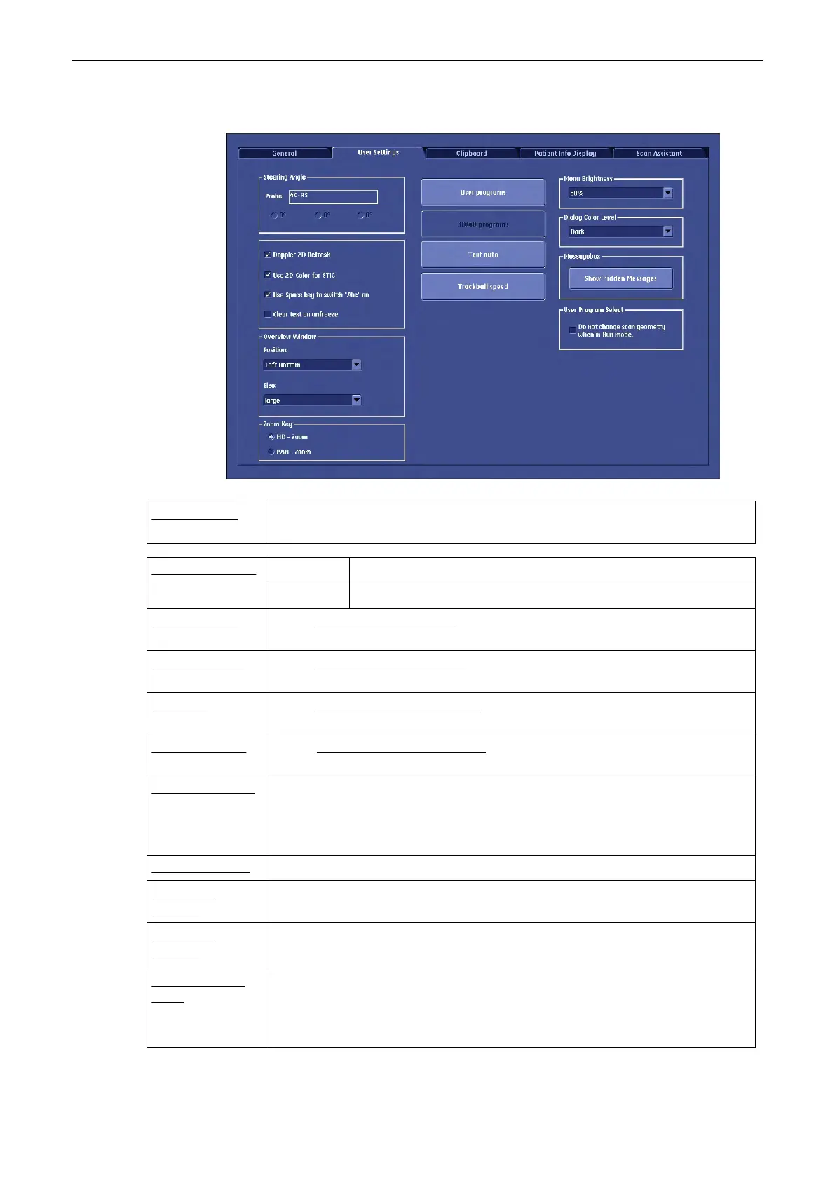 Steering Angle: If the selected probe supports steering the possible angles are displayed. If the