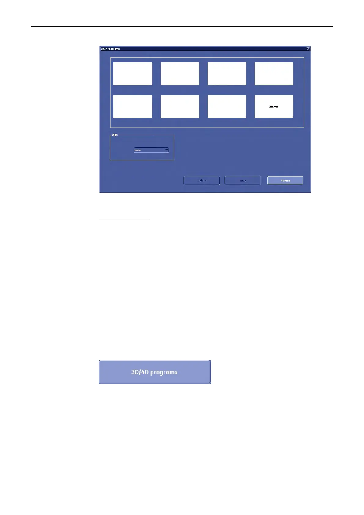 1. Select the [3D/4D programs] button (in the System Setup – User Settings page).