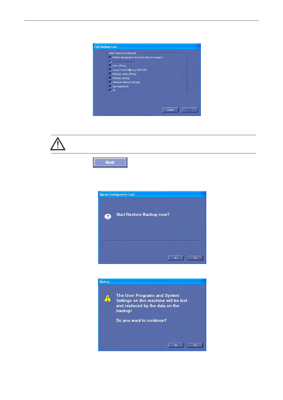 The data from the backup always replaces the corresponding data on the Voluson® S6/S8