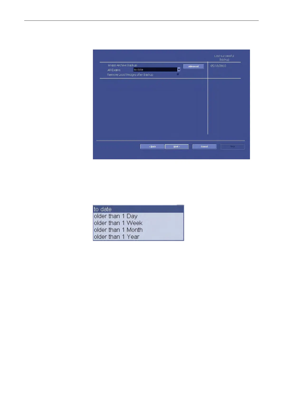 drop-downlist. All exams the from the last backup untill the date you choose will be