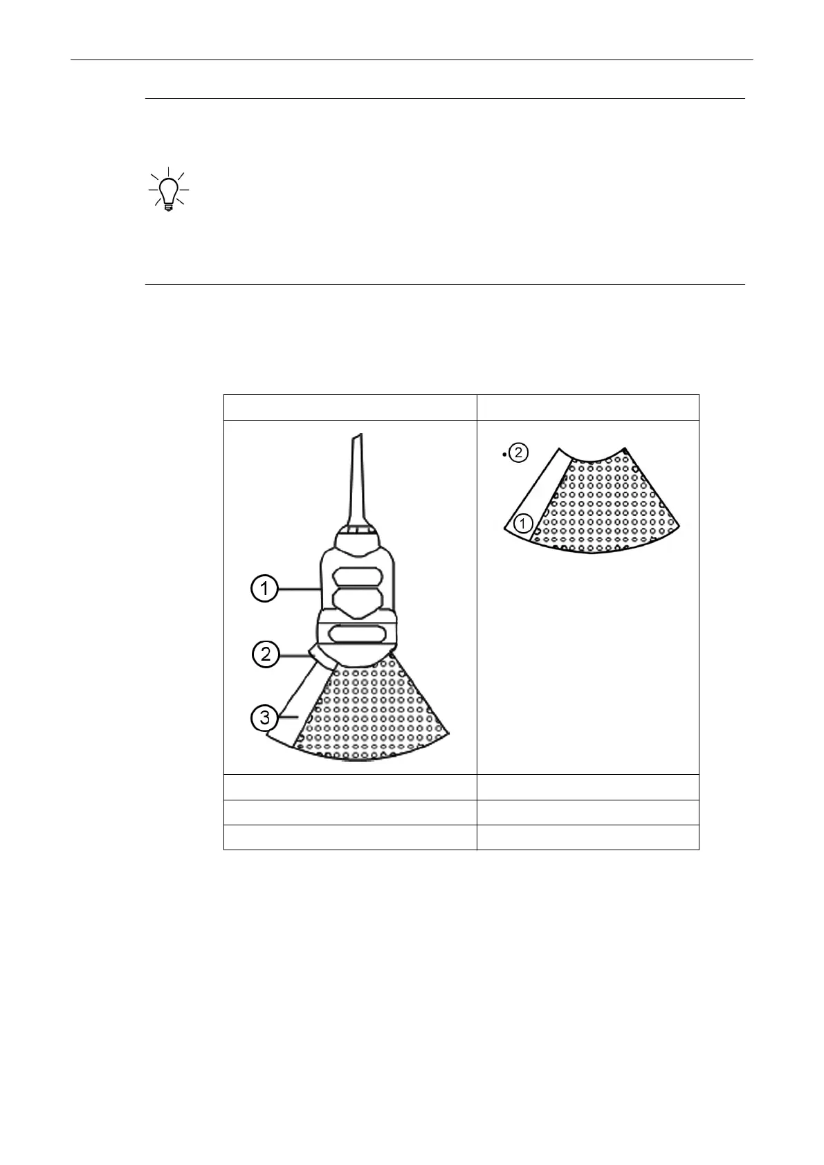 1. Mark for direction of insonation 1. Shadowing