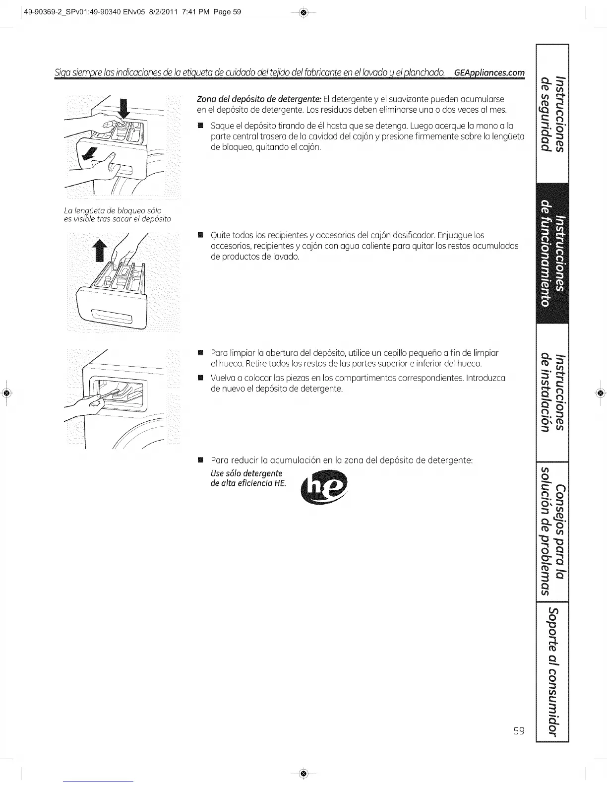 Zone del dep6sito de detergente: Eldetergente y el suavizante pueden acumularse