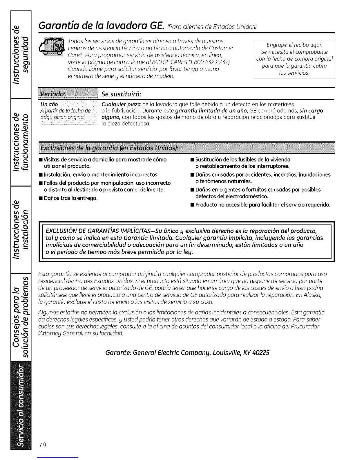 Garantia de la lavadora G& :polo E todo Unido ;