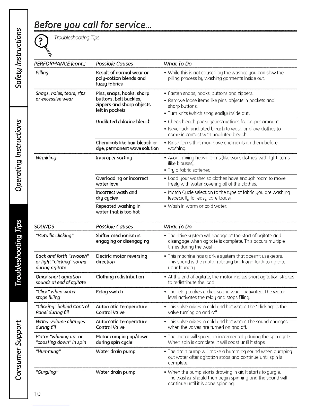 PERFORMANCE (cont.) Possible Causes What To Do