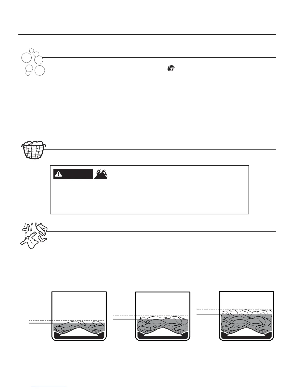 Nunca coloque prendas en la lavadora que estén humedecidas con gasolina u otros fluidos