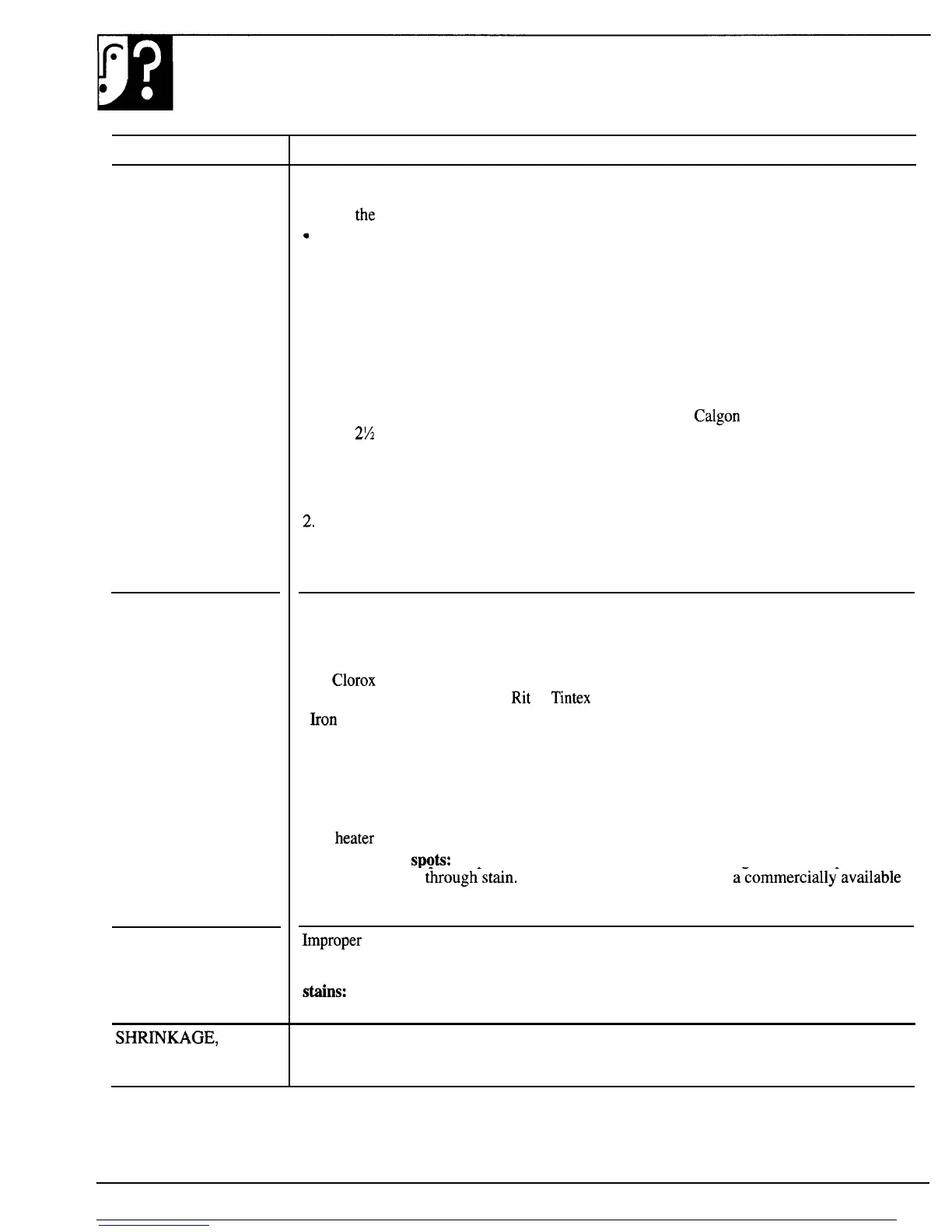 Incomplete removal of soil due to constant use of insufficient detergent. Check hem