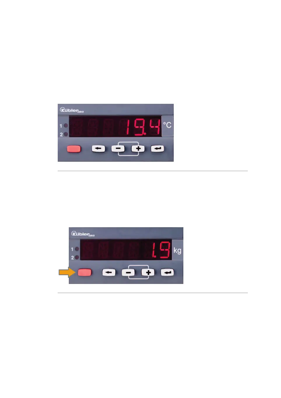 To tare the mixer weight, press the red button.