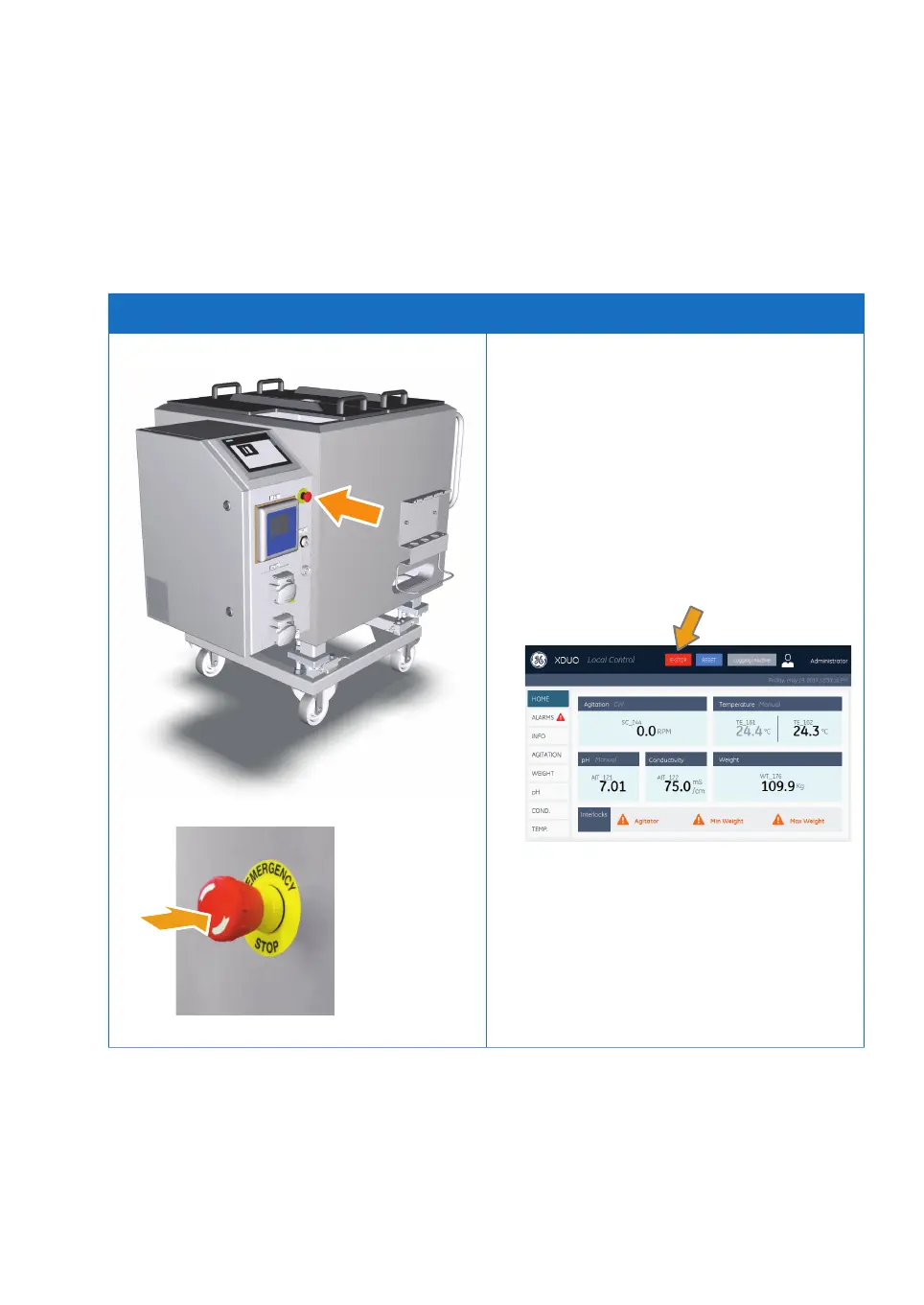 2.3.2 Emergency procedures, Xcellerex XDUO mixer