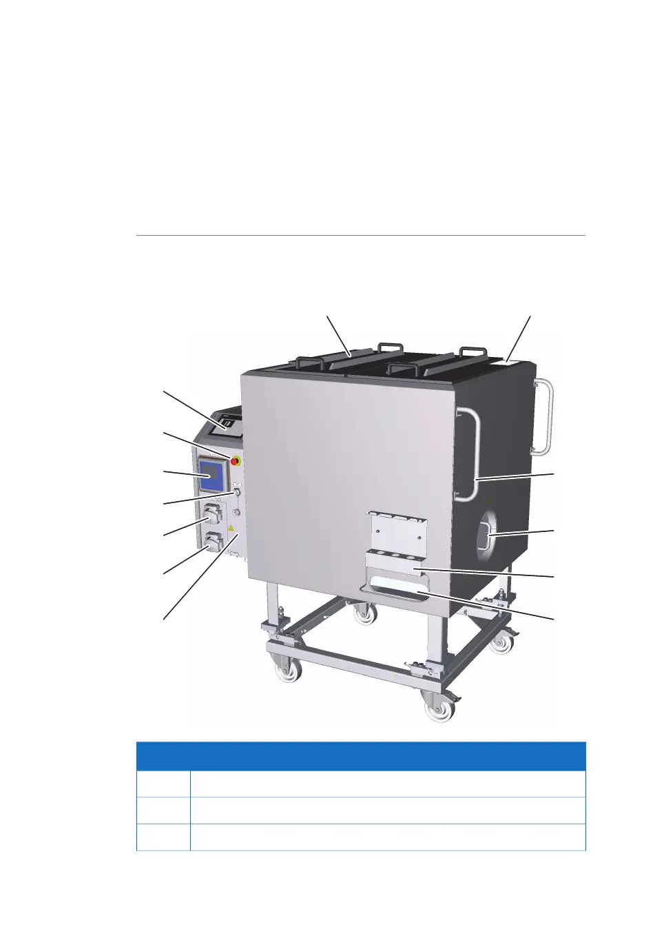 The following illustrations show a full configuration of a jacketed 500 L XDUO mixer. The