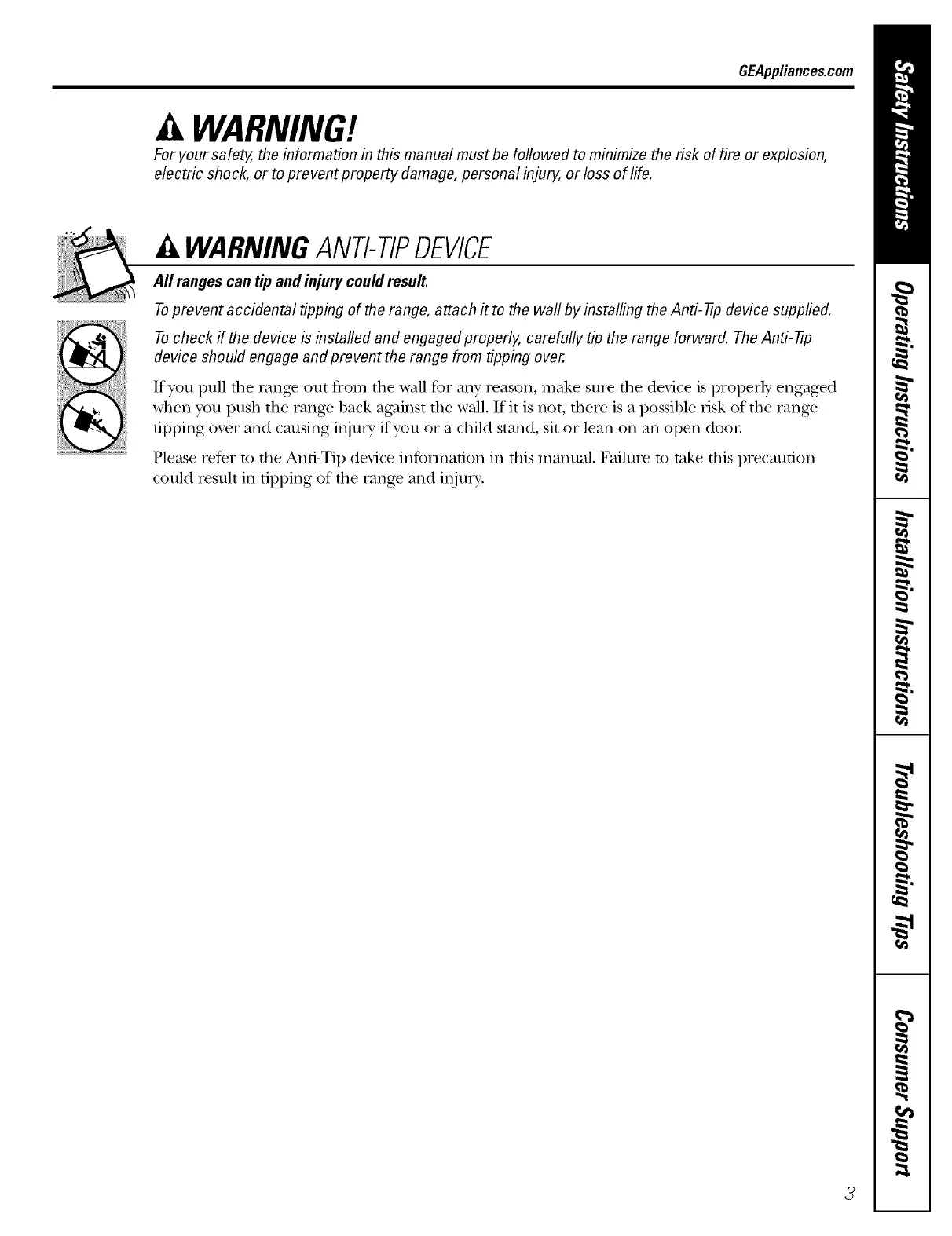 Please refer m the Anti-Tip device information ill this manual. Failure m take this piecaution