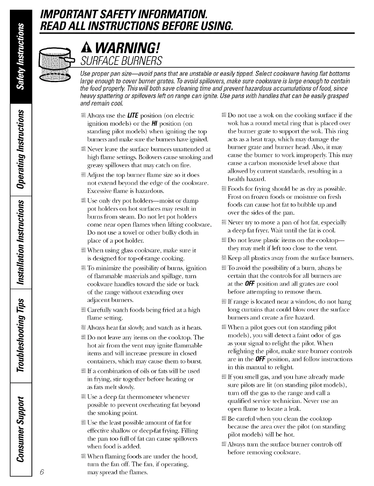 large enough to cover bumer grates. To avoid spiflovers, make sure cookware is large enough to contain