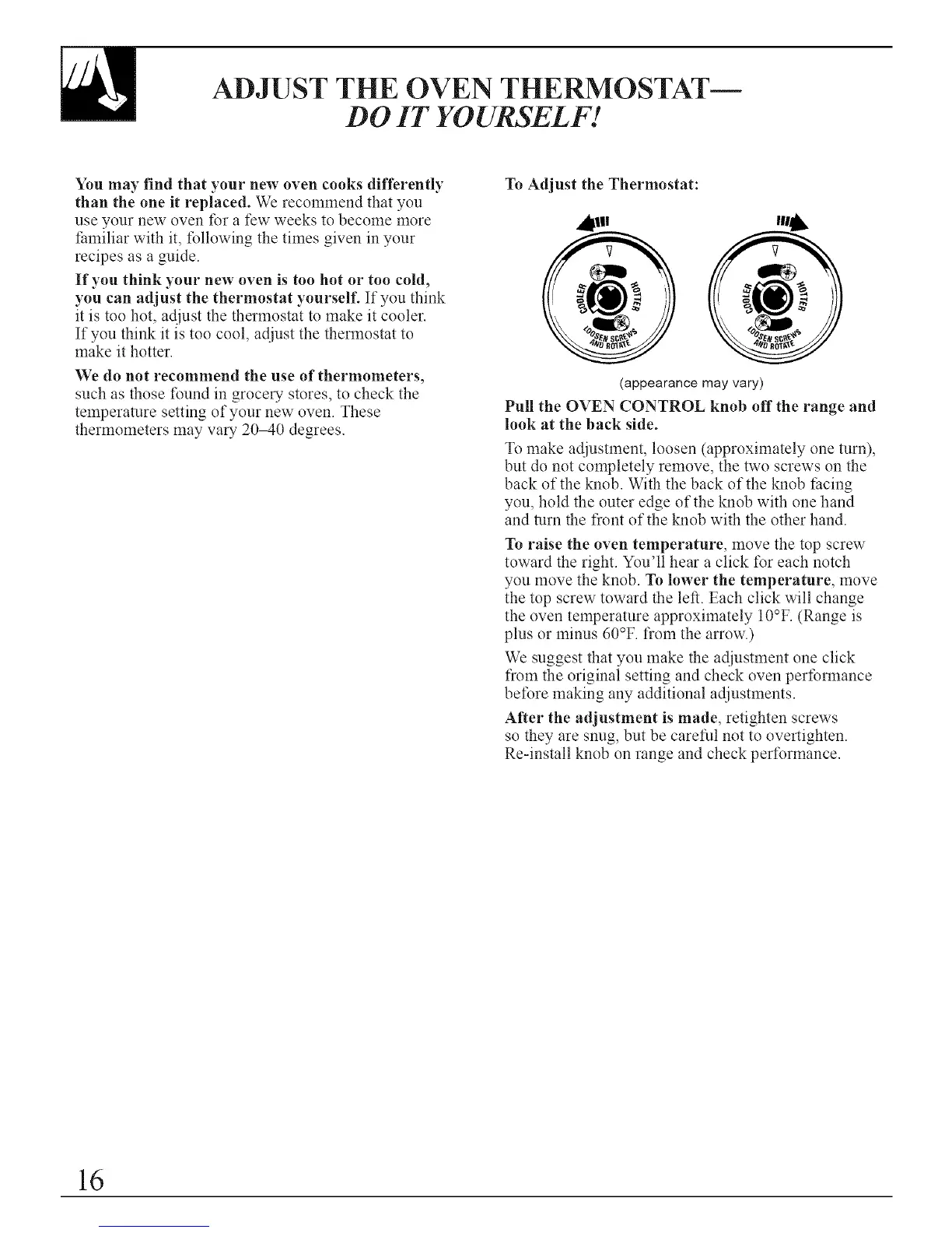 ADJUST THE OVEN THERMOSTAT--
