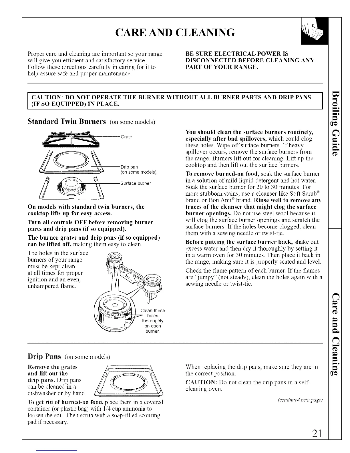 surface burners. If the holes become clogged, clean