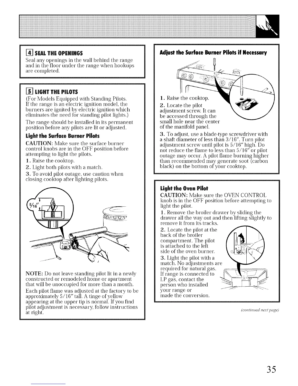 pilot adjustment is necessary, follow instructions