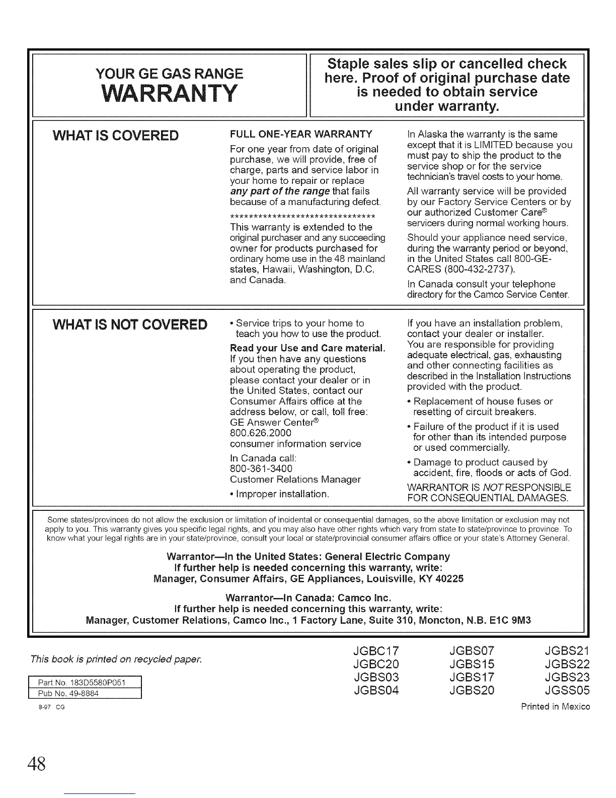 YOUR GE GAS RANGE here. Proof of original purchase date