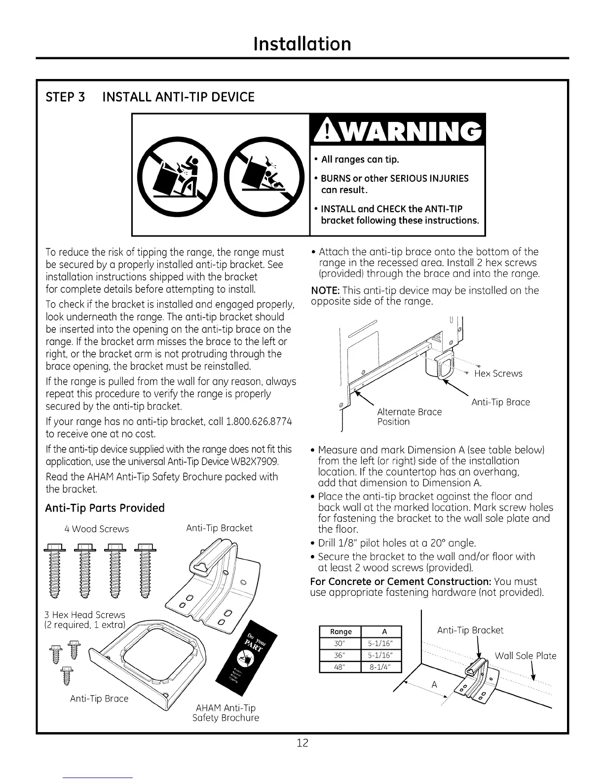If your range has no anti-tip bracket, call 1.800.626.8774