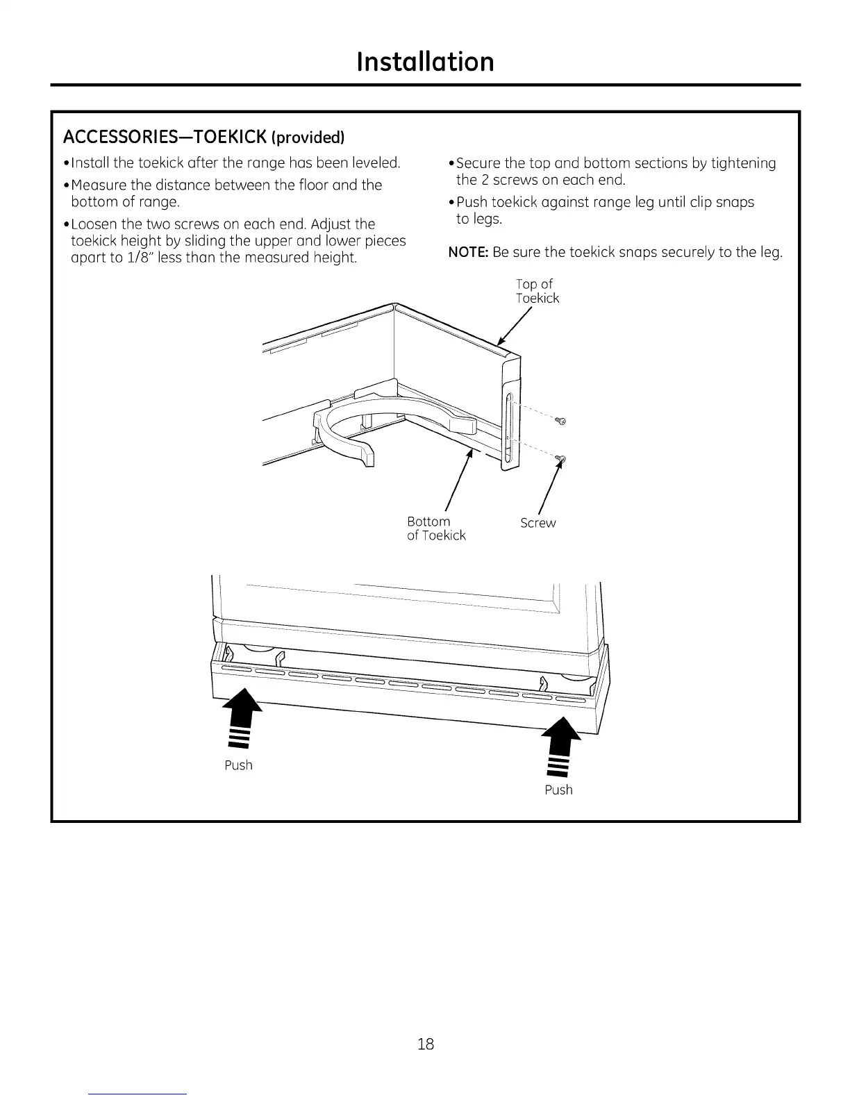 • lnstoll the toekick ofter the ronge hos been leveled.