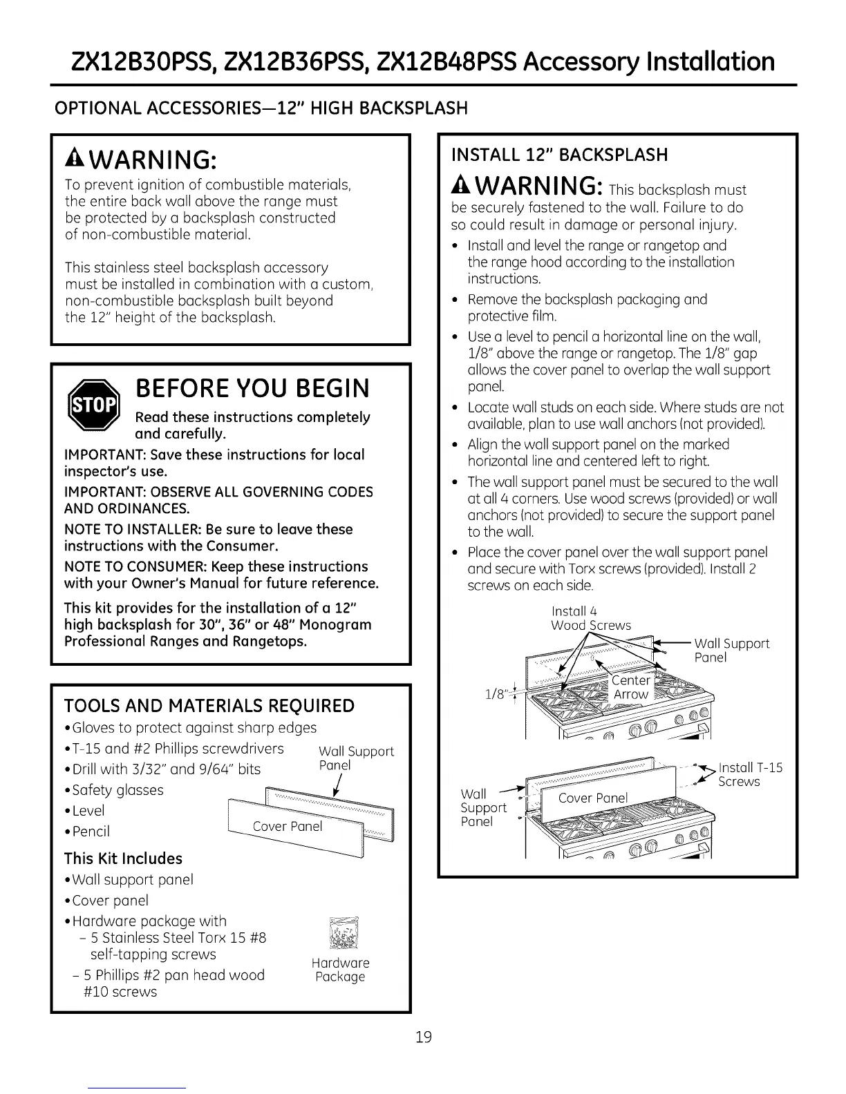 ZX12B30PSS, ZX12B36PSS, ZX12B48PSS Accessory Installation