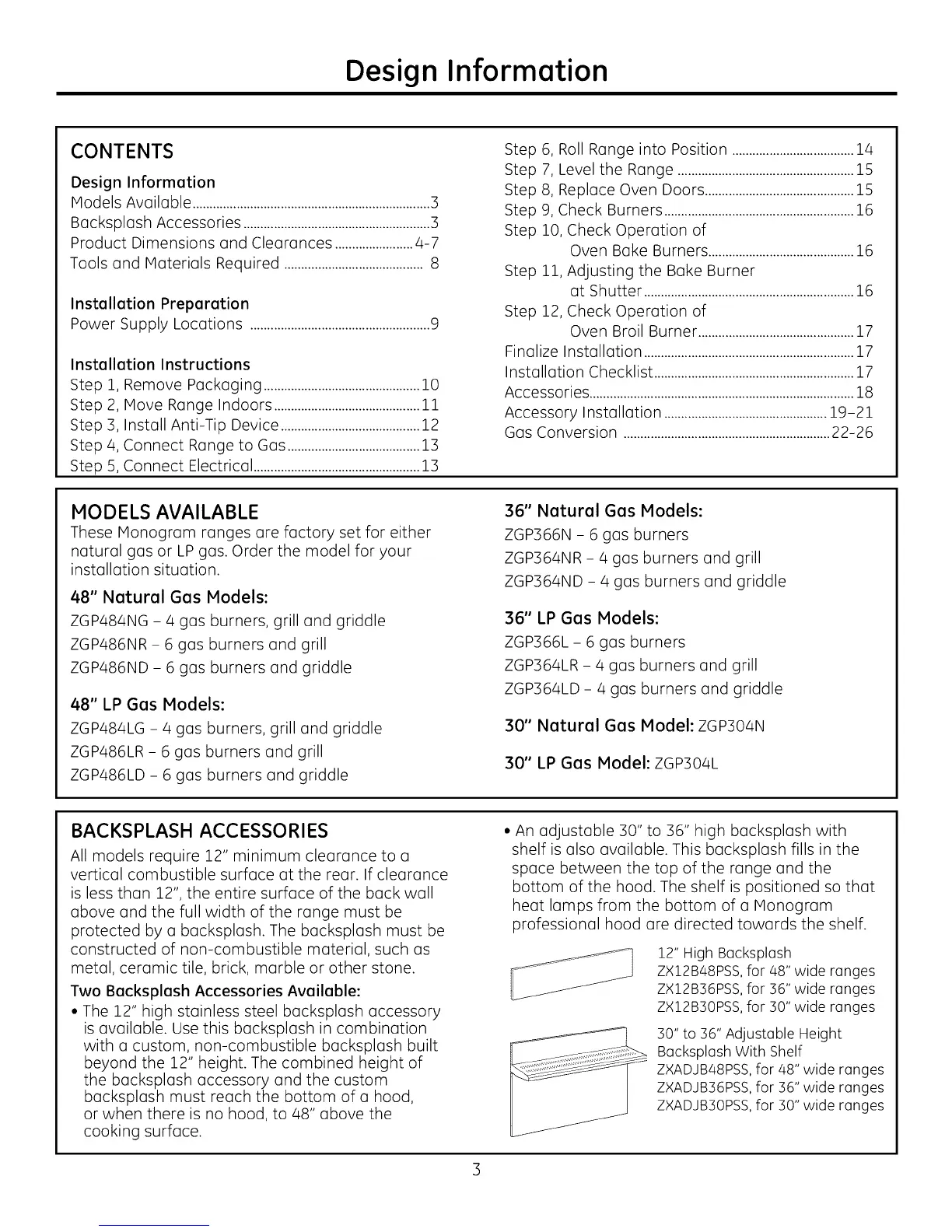 Backsplash Accessories .......................................................3