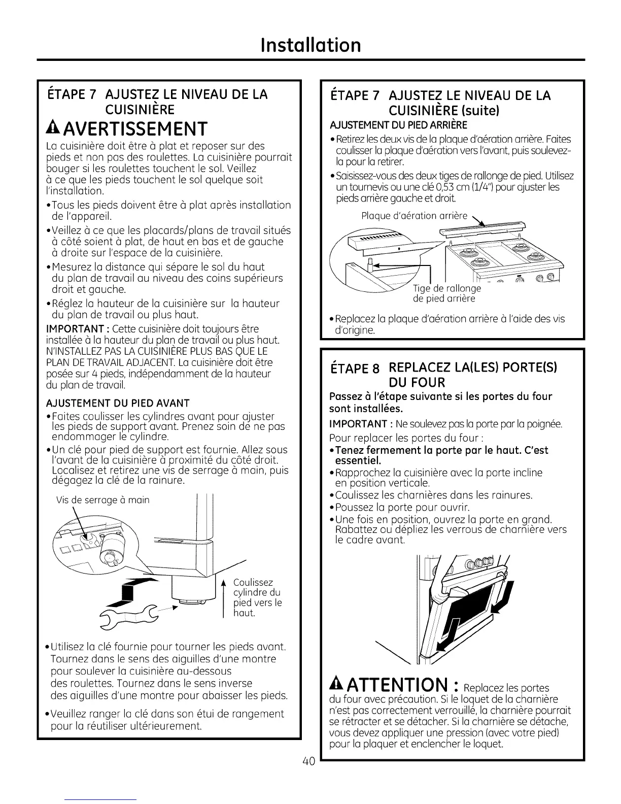 • Tous les pieds doivent 6tre 6 plat apr&s installation