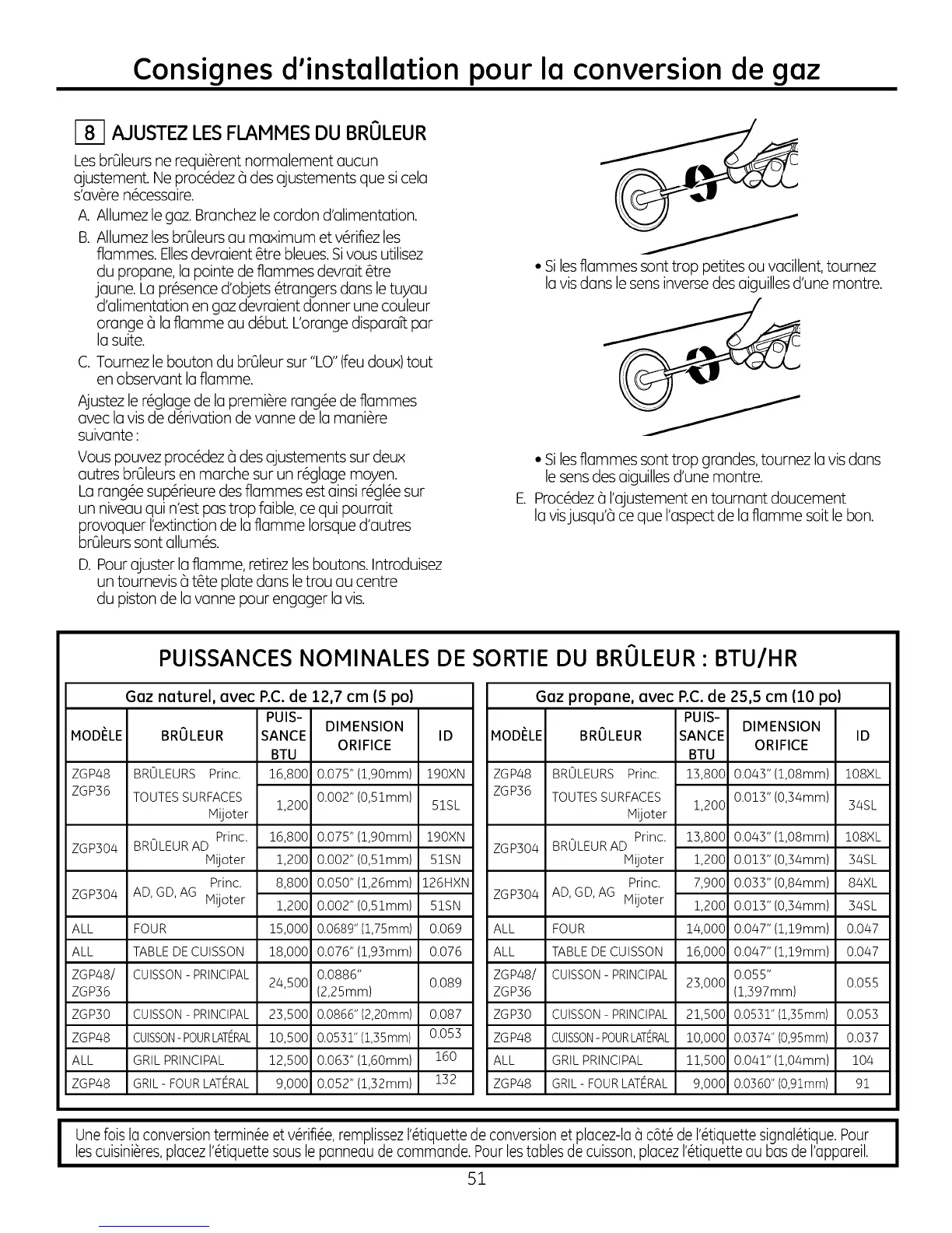 BRULEURS Princ. 16,800 0.075" (1,90mm) 190XN ZGP48 BRULEURS Princ. 13,800 0.043" (1,08mm)