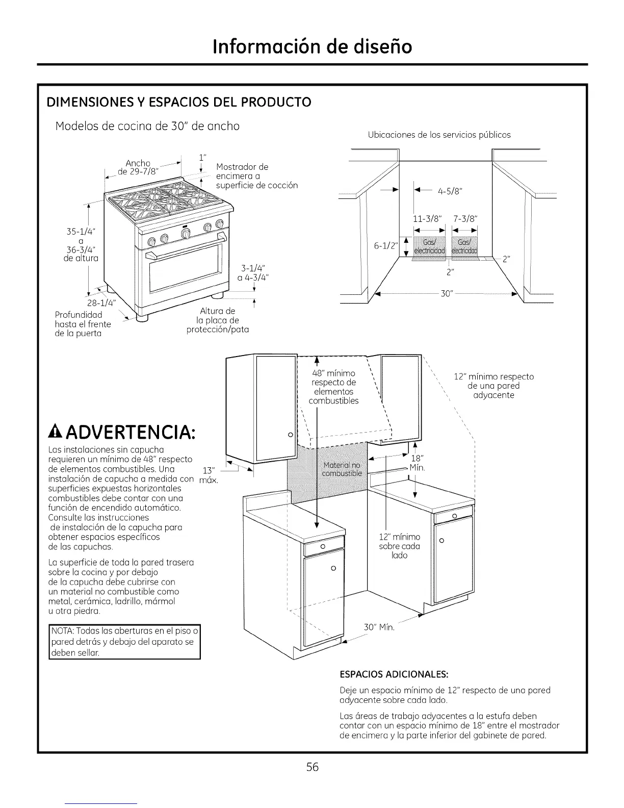 Deje un espacio mfnimo de 12" respecto de una pared