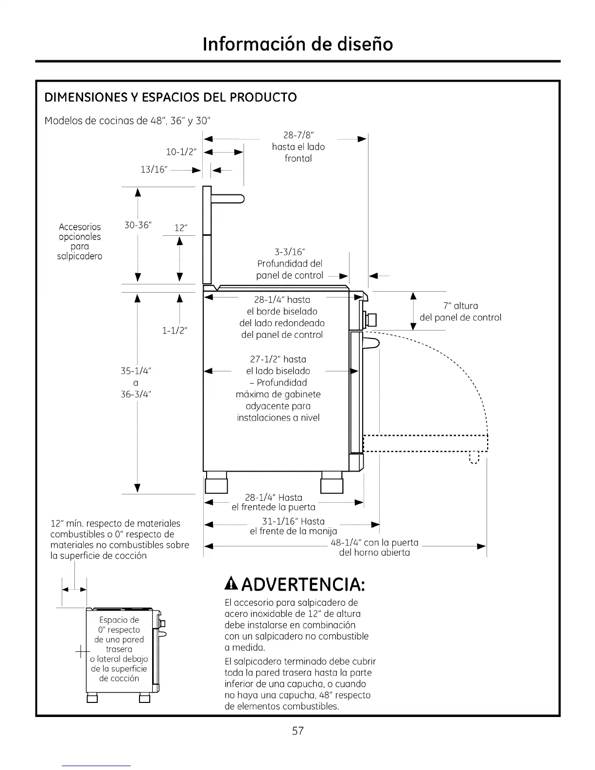 DIMENSIONES Y ESPAClOS DEL PRODUCTO