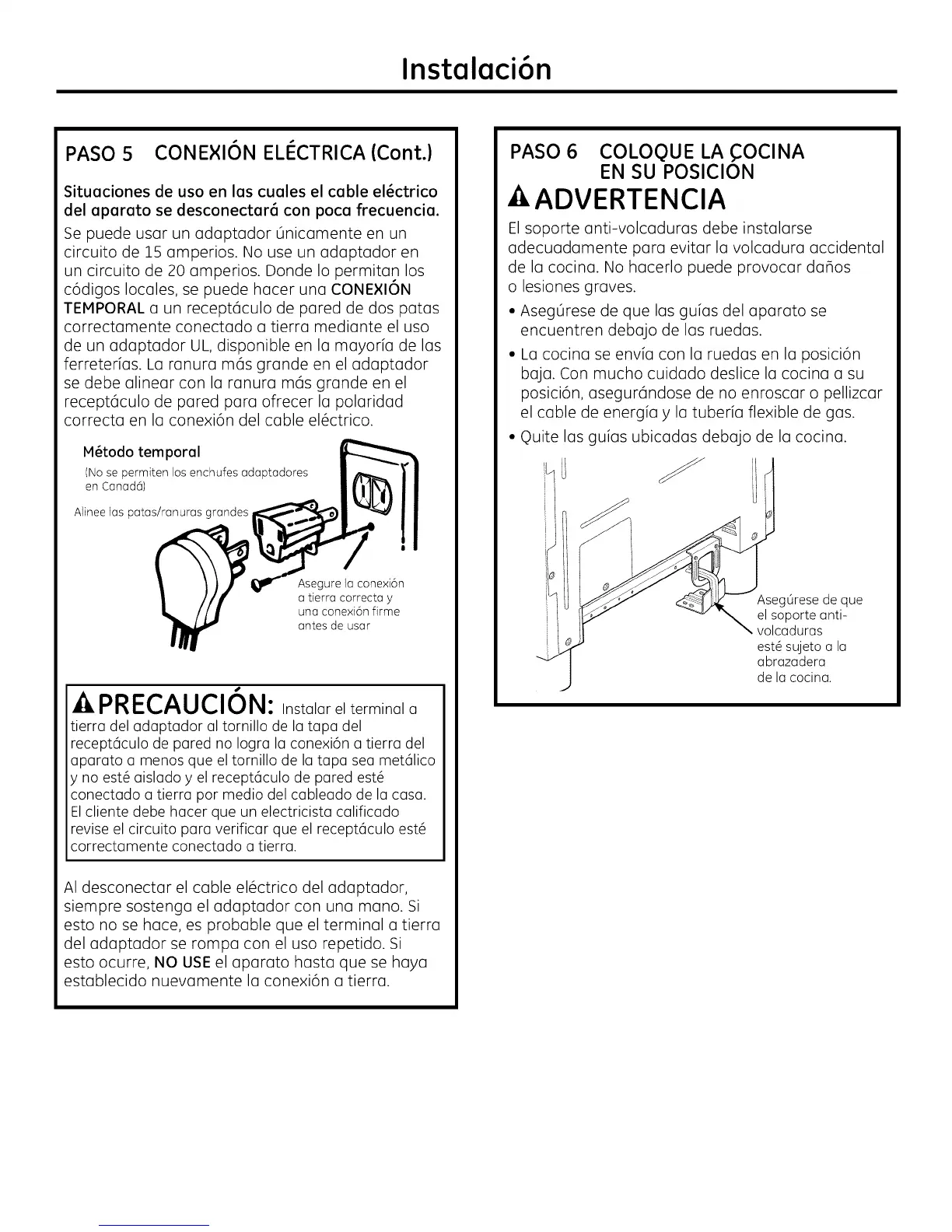 correcta en la conexi6n del cable el6ctrico.