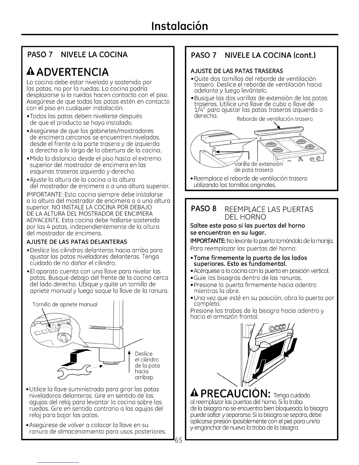 •El aparato cuenta con una Ilave para nivelar las
