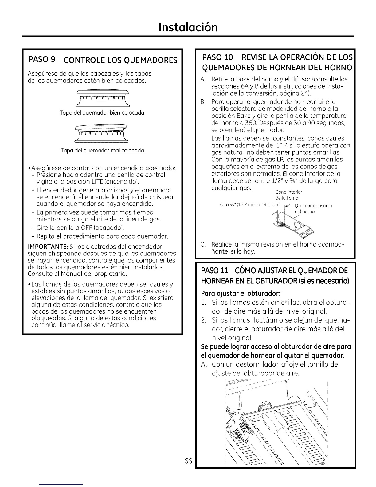 •Las llamas de los quemadores deben set azules y