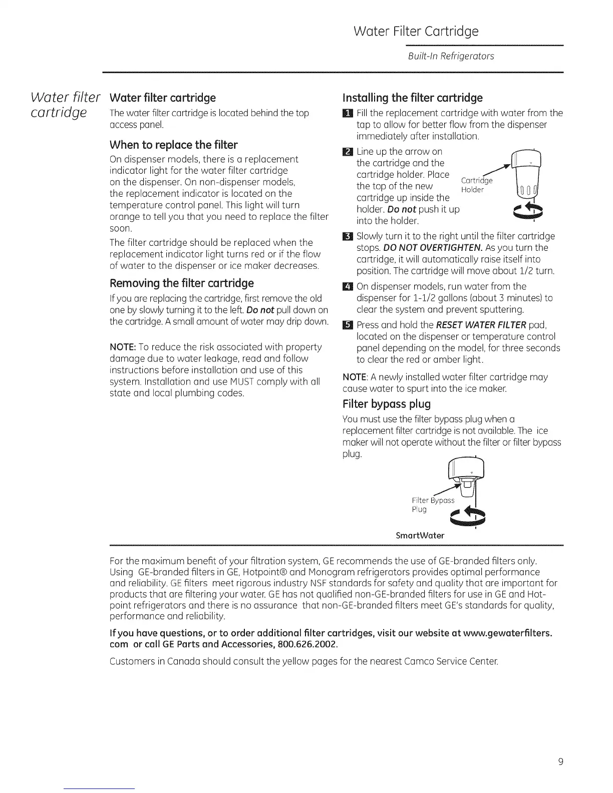 Forthe maximum benefit of your filtration system, GErecommends the use of GE-branded filters only.
