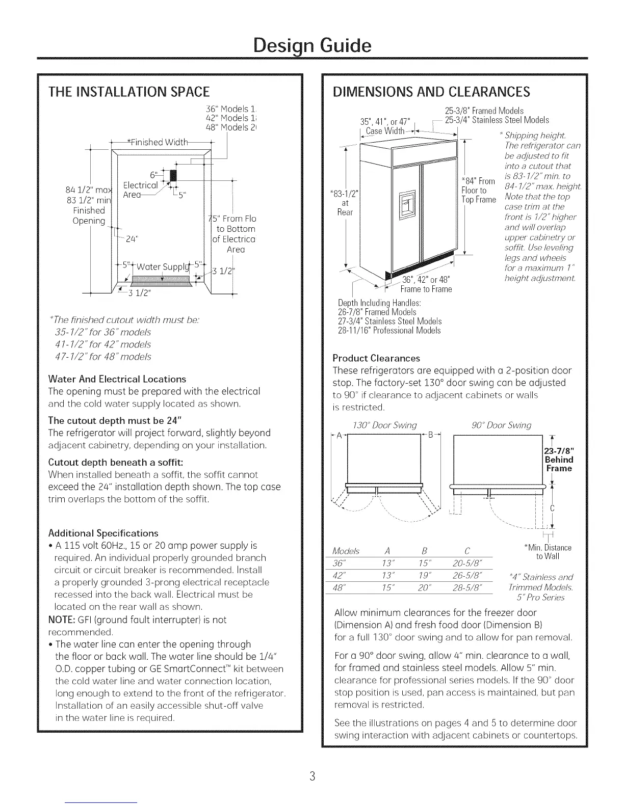 For a 90° door swing, allow 4" min. clearance to a wall,