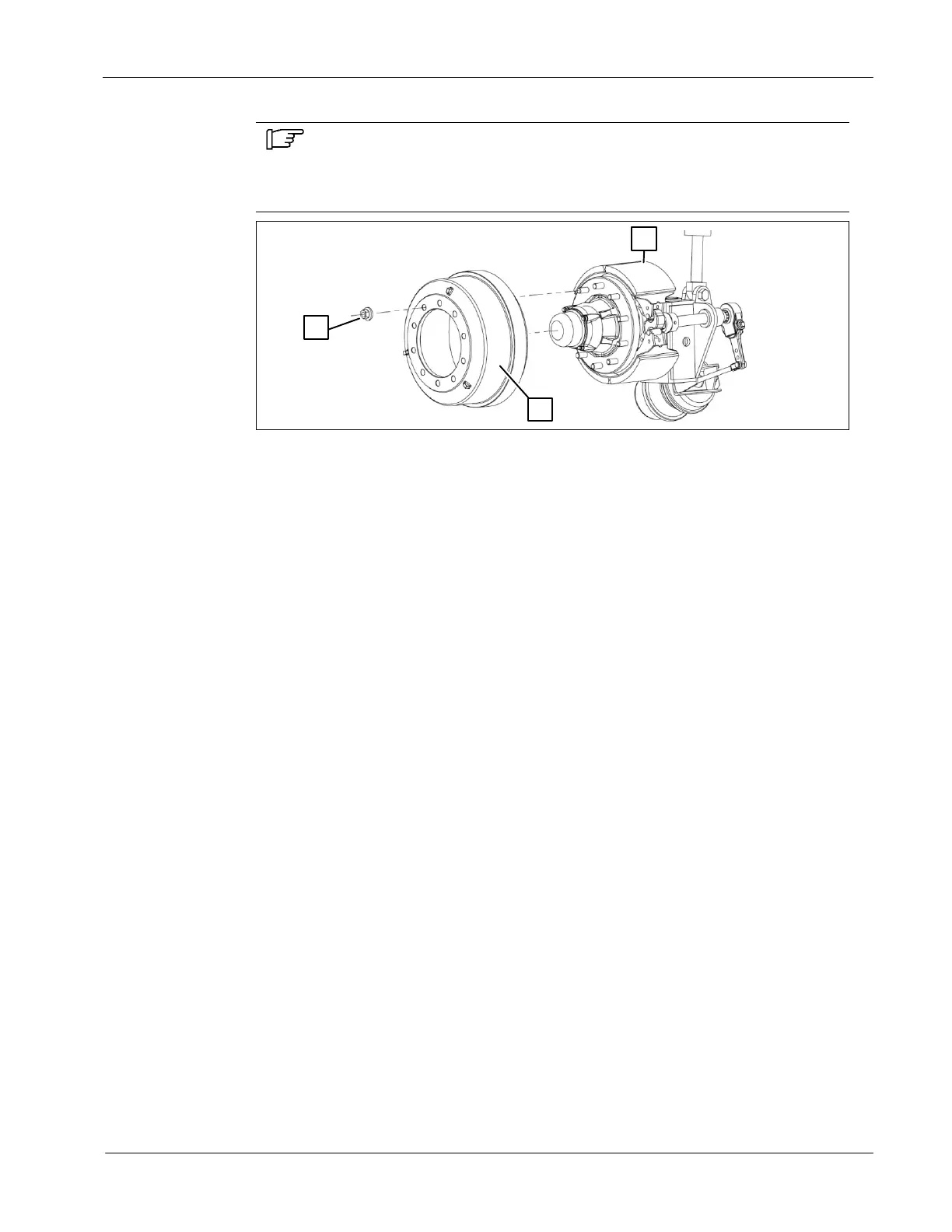 ● Screw three nuts (3) on the hub to secure the drum (1) temporarily;