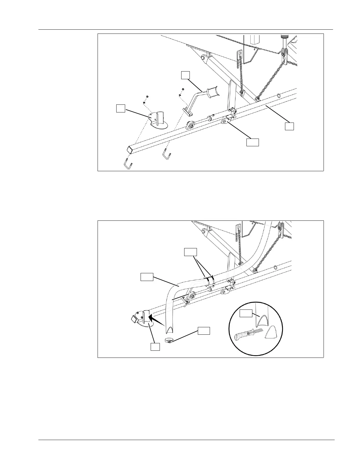 ● Install the deflectors (8) on the tool bar (1) using provided hardware;