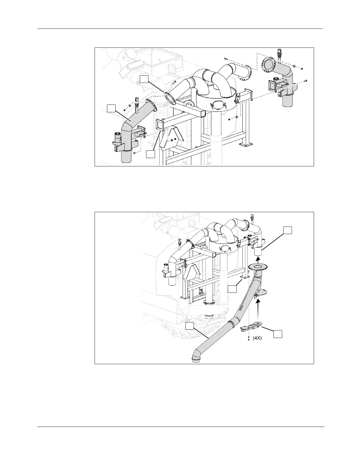 ● Fix the part (1) to the flange (2) and to the tool bar frame (3), on both sides,