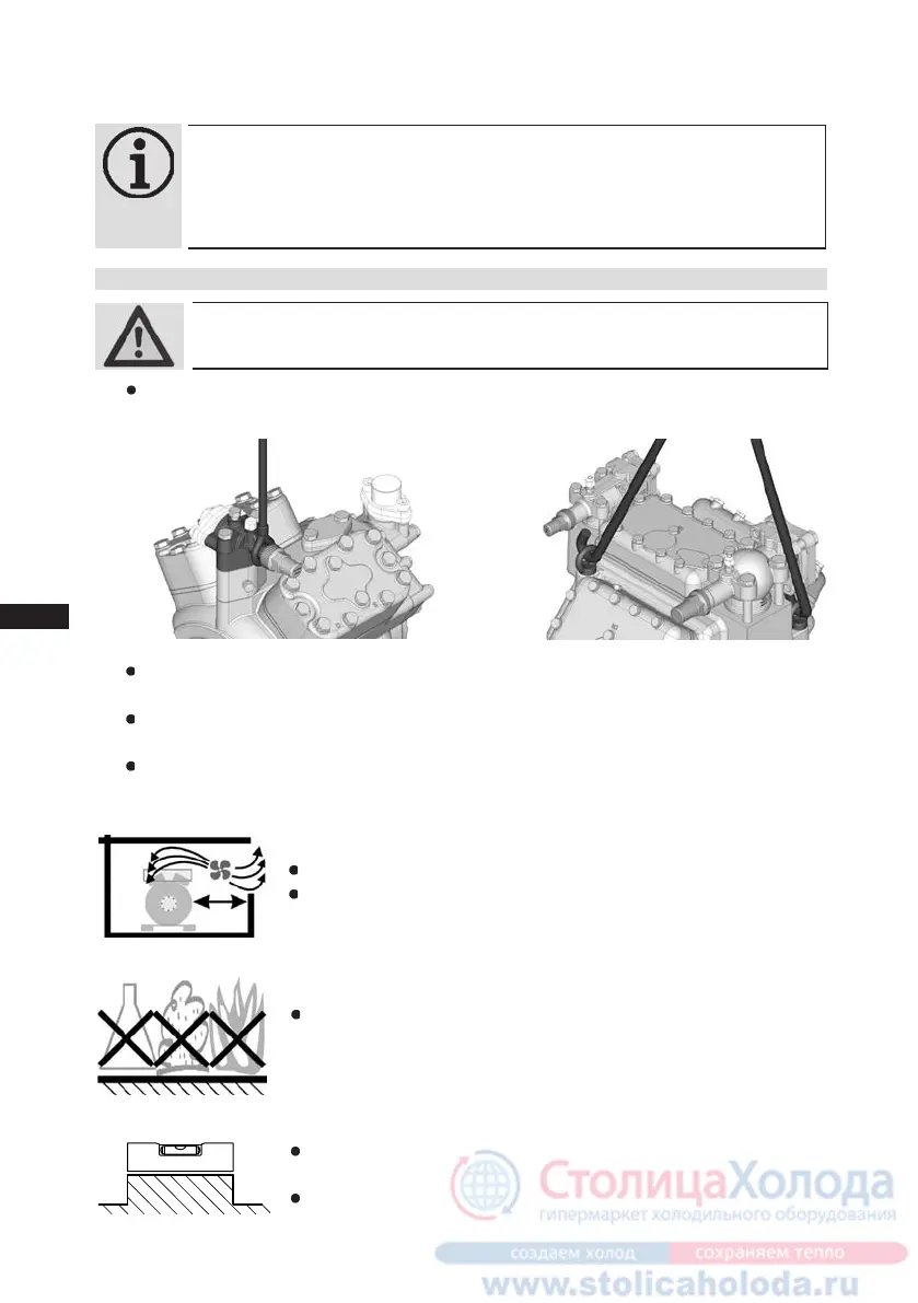 WARNING! Move compressors only with hoists that have adequate load-bearing