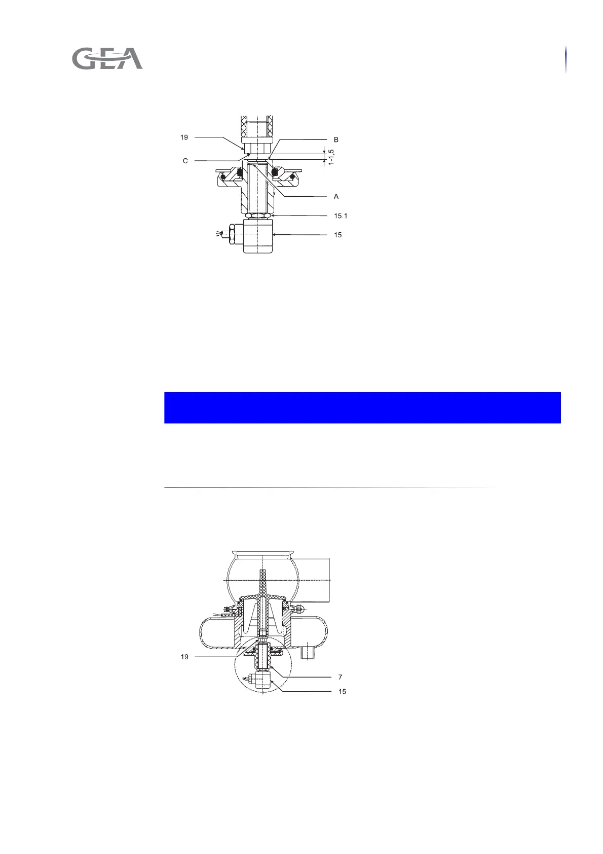 areas (B) and (C) on the screw (19). If the gap is smaller or larger than 1 to 1.5mm,