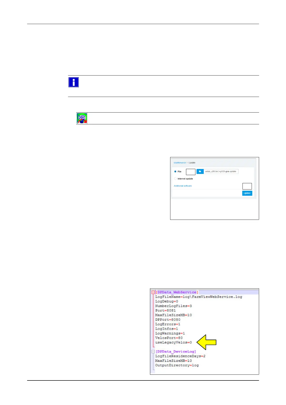 To ensure FarmView functionality, a file entry must be changed in automatic milking
