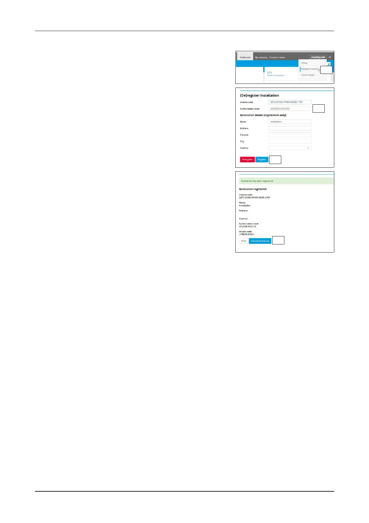 1. Open the section ((De)register License)