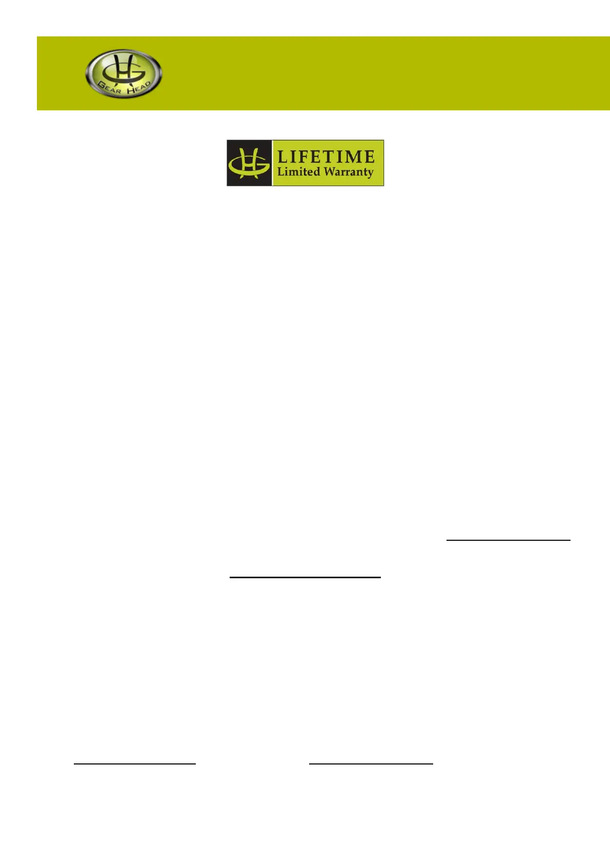 workmanship for the reasonable lifetime of the product. If the product is defective, Gear Head,