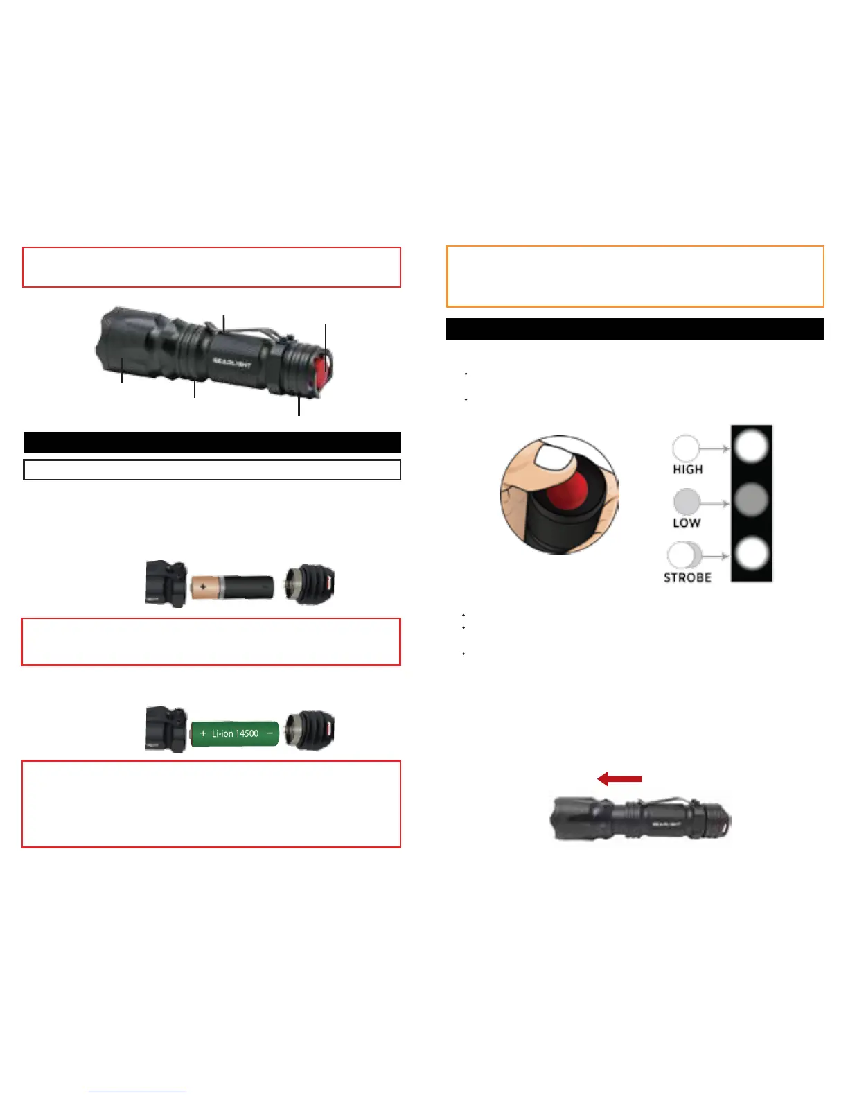 CAUTION: The flashlight may become warm or hot after extended periods of use