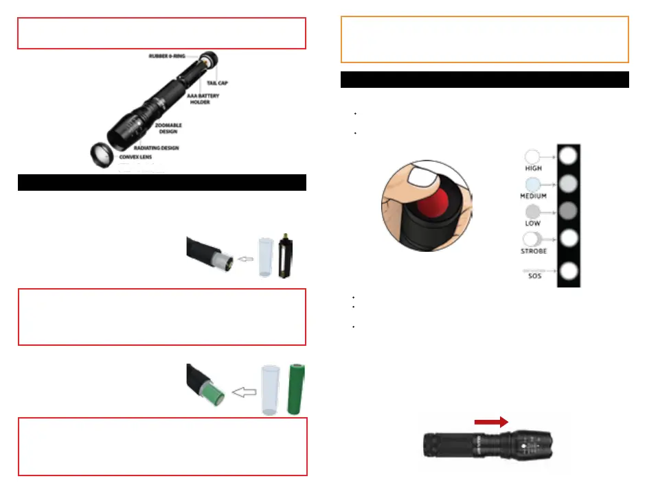 There are 5 dierent lighting modes. (High, Medium, Low, Strobe, SOS)