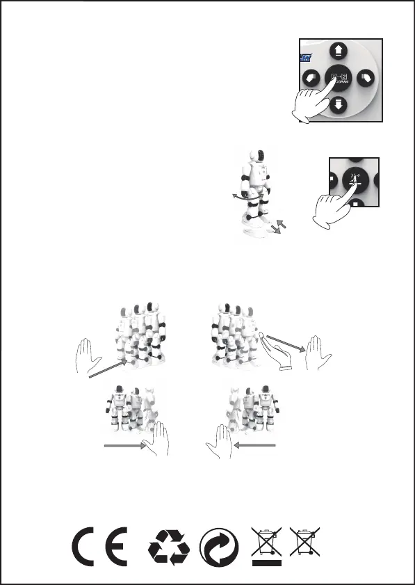 Druk op de knop "Robotdans" op de afstandsbediening.