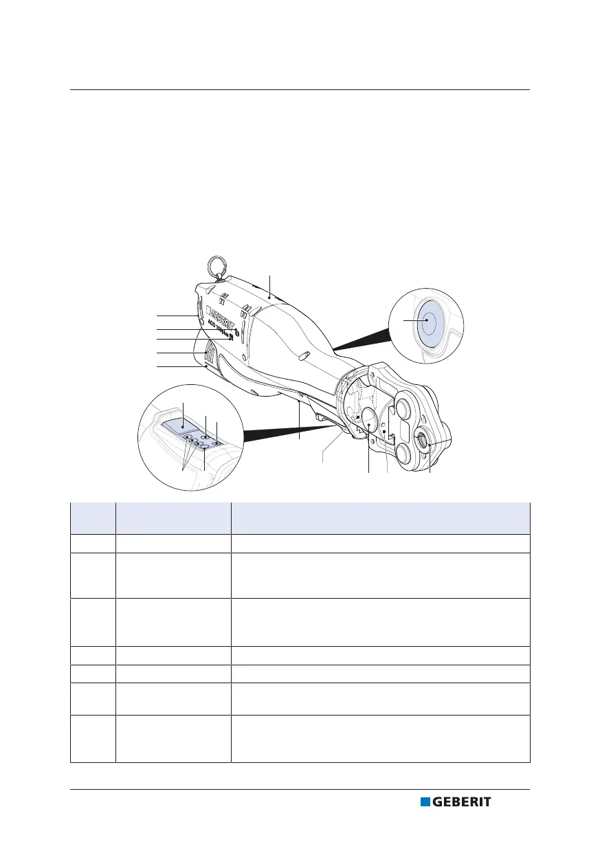 L’outil de sertissage Geberit ACO 103plus se compose des éléments suivants: