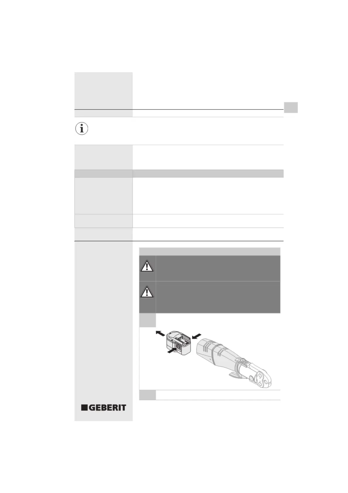 Regelmässig • Presswerkzeug und Akku auf äussere sicherheitsrelevante Mängel und