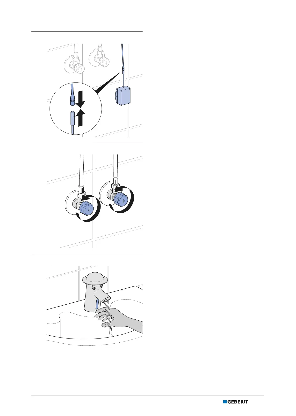 21 Funktion der Waschtischarmatur prüfen.